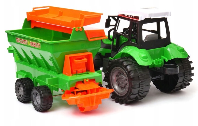Acest tractor de jucărie cu remorcă transformă joaca într-o adevărată experiență de fermă, unde copilul conduce, transportă și descarcă materiale exact ca un fermier adevărat.