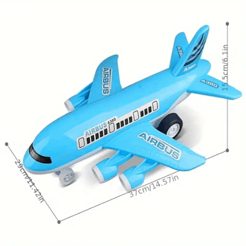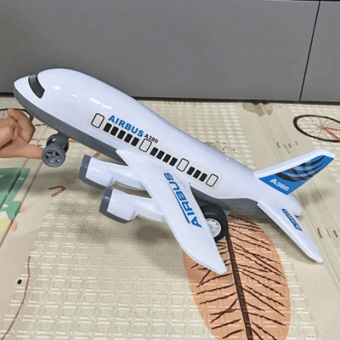 Avionul de jucărie Airbus A380 este disponibil în culori atractive, alb sau albastru, cu detalii imprimate ce imită fidel designul real.