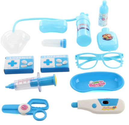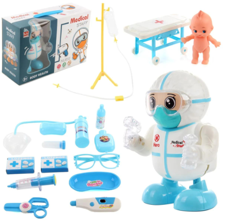 Alături de ea, copiii primesc un set complet de accesorii medicale, cum ar fi un stetoscop, o seringă, un termometru și multe altele, permițându-le să simuleze consultații reale.
