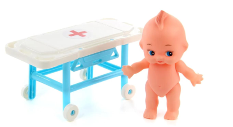 Setul include și un bebeluș pacient și o targă, oferind o experiență completă de îngrijire.