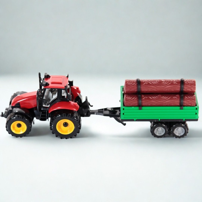 Acest tractor jucărie pentru copii simulează activitățile reale de transport al lemnului, oferind o experiență autentică de joacă la fermă.