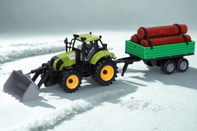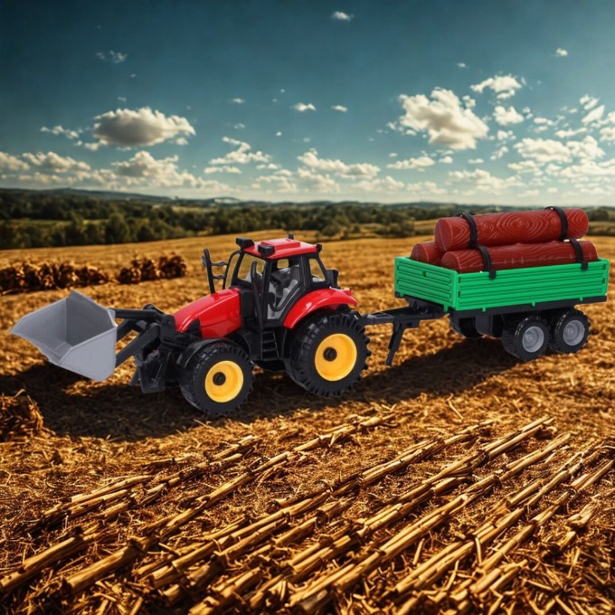 Acest tractor jucărie pentru copii combină lucrările agricole și de transport într-o joacă realistă și captivantă.