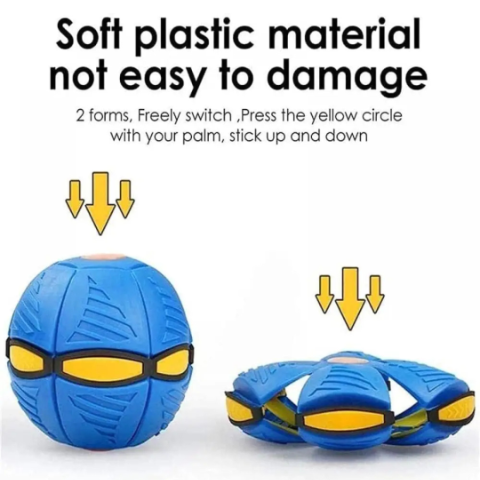 Cu o simplă apăsare, mingea se transformă rapid într-un frisbee plat, gata de aruncat și prins, pentru ore întregi de joacă activă în parc sau în curtea casei.