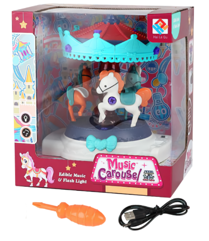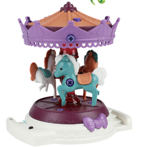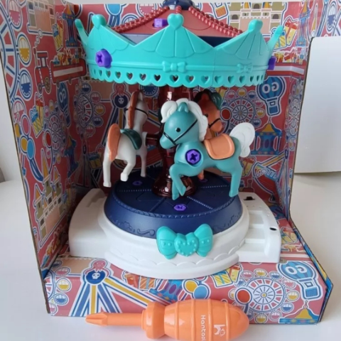 După ce caruselul este complet asamblat, se poate roti și emite sunete muzicale plăcute, împreună cu lumini intermitente care transformă jocul într-o adevărată magie.