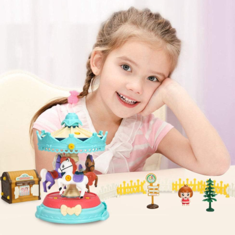 Acest carusel muzical cu ponei oferă o experiență captivantă de joc creativ pentru copii.