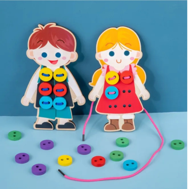 Procesul de înșiretare a nasturilor ajută copiii să învețe abilități esențiale pentru viața de zi cu zi, precum închiderea hainelor sau legarea șireturilor.