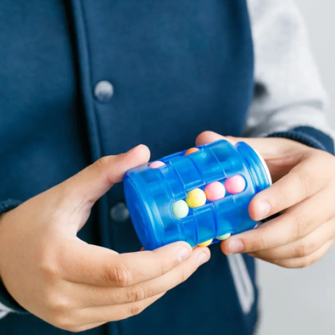 Designul compact și culorile vibrante fac din această jucărie un companion ideal pentru călătorii sau momente de relaxare.