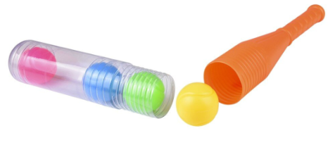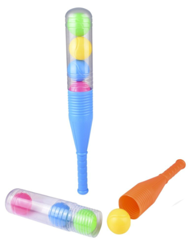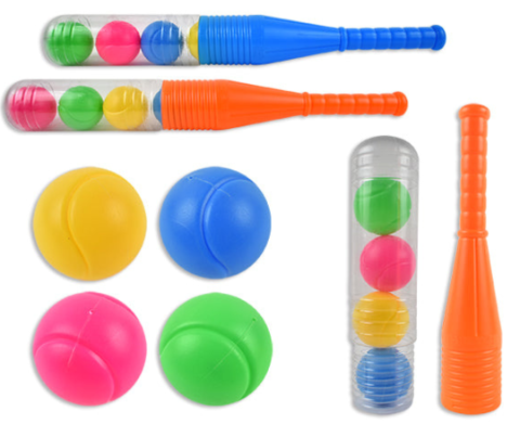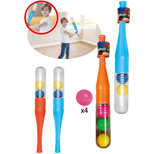 Setul include o bâtă de baseball ușoară, realizată din plastic durabil, și patru mingi viu colorate.