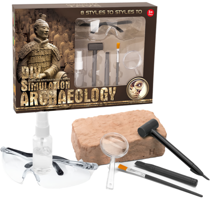 Acest set de arheologie captivant oferă micilor exploratori șansa de a descoperi unul din cele 8 artefacte unice ascunse în blocurile de ipsos.