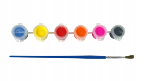 Setul include șase culori vibrante și o pensulă, permițându-le celor mici să personalizeze fiecare piesă cu designuri unice și colorate.