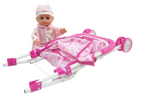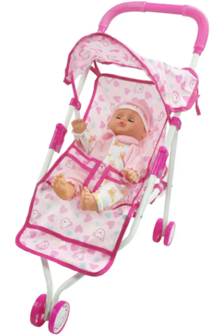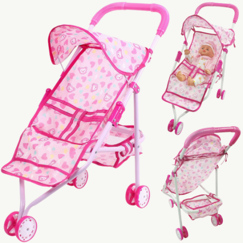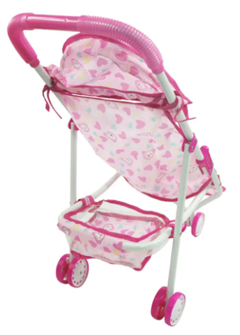 Micile mămici vor adora acest cărucior roz adorabil, perfect pentru a transporta păpușa preferată în plimbări imaginative.