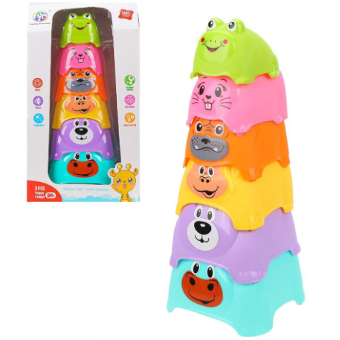 Stivuirea animalelor devine un joc plin de bucurie, în timp ce copilul descoperă diverse forme și culori.