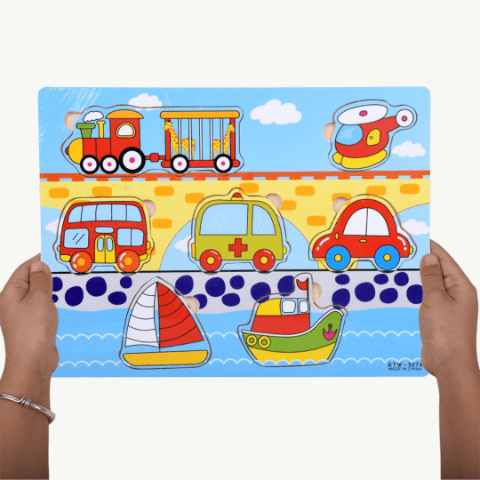 Puzzle Transport Din Lemn – Vehicule Colorate