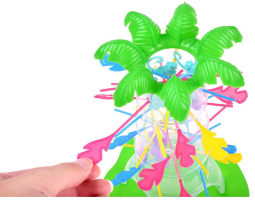 Fiecare jucător rotește săgeata pentru a alege ce bețișor să scoată, dar ai grijă – nu vrei să fii cel care face maimuțele să cadă!
