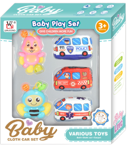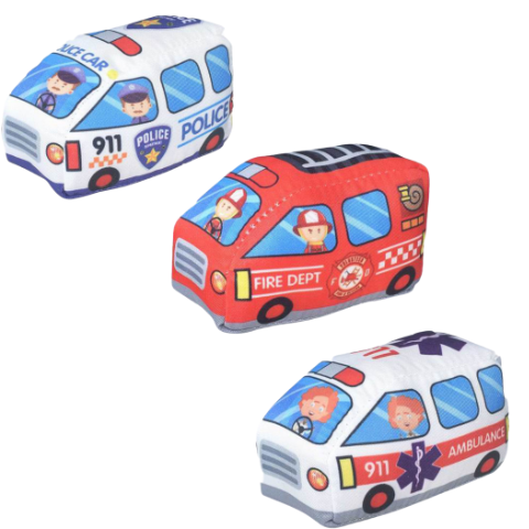 Mașinuțele de poliție, pompieri și ambulanță, realizate din material textil moale, sunt perfecte pentru mâinile delicate ale bebelușilor, oferindu-le siguranță și confort în joacă.