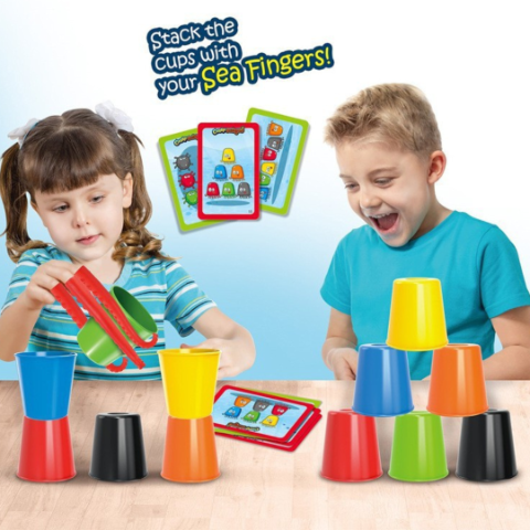 Cu ajutorul tentaculelor speciale, micuții trebuie să ridice și să aranjeze paharele colorate conform provocărilor de pe cărțile de joc.