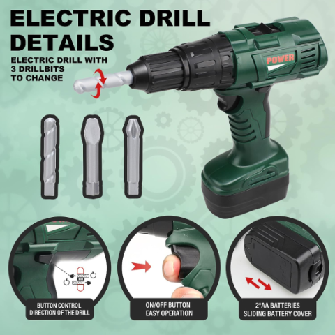 Această bormașină electrică de jucărie oferă micilor meșteri o experiență autentică de bricolaj.