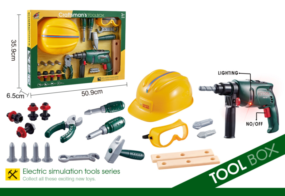 Set Unelte de Construcție cu Cască și Bormașină Electrică
