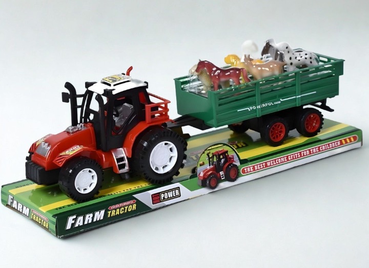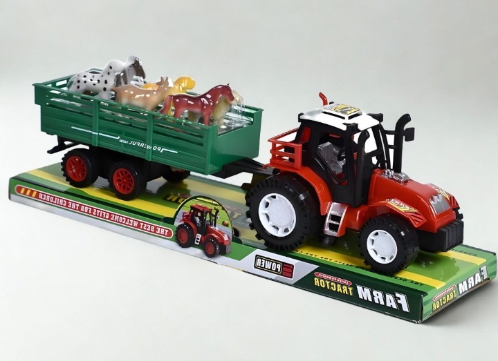 Tractorul cu remorcă și animale de fermă transformă joaca într-o aventură plină de imaginație, în care copilul transportă animalele, inventează scenarii de lucru la fermă și descoperă lumea utilajelor agricole prin joc activ și creativ.