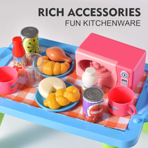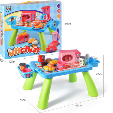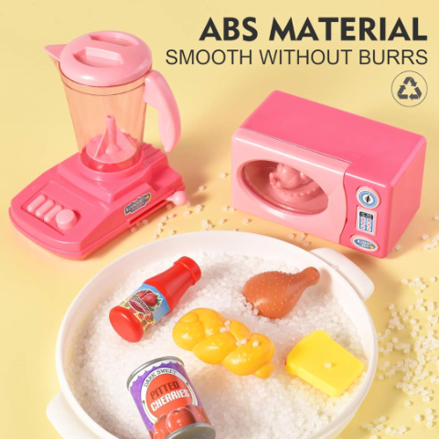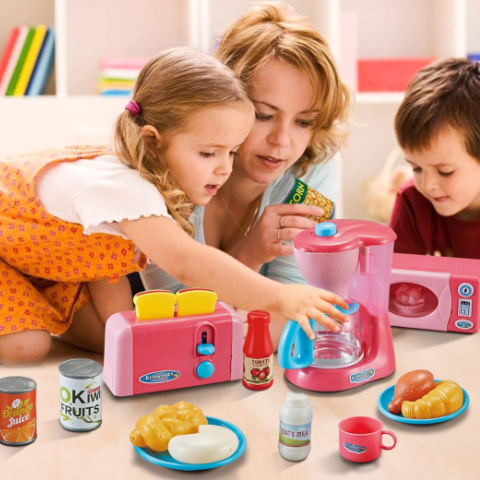 Blenderul, prăjitorul de pâine și cuptorul cu microunde din plastic simulează procesele dintr-o bucătărie adevărată, stimulând creativitatea celor mici.