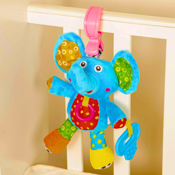 Acest adorabil elefănțel de agățat este o jucărie senzorială perfectă pentru bebeluși.
