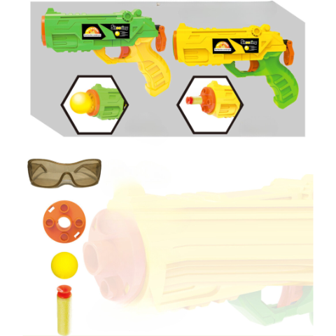 Designul atractiv și robust oferă posibilitatea de a folosi atât bile de spumă, cât și proiectile tip săgeți pentru o experiență variată și captivantă.