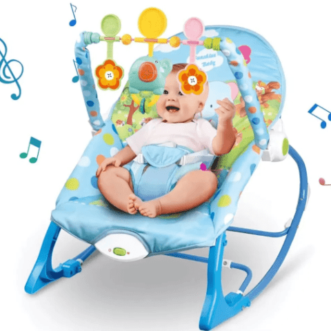 Un loc ideal pentru relaxare și joacă, balansoarul oferă vibrații liniștitoare care calmează și adorm ușor bebelușul.