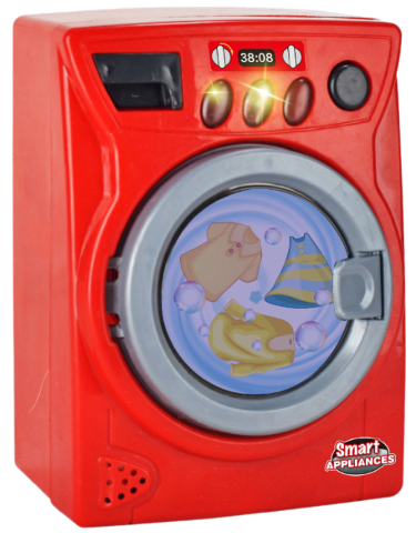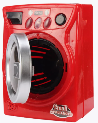 Această mașină de spălat jucărie aduce bucurie copiilor care doresc să imite activitățile din gospodărie.