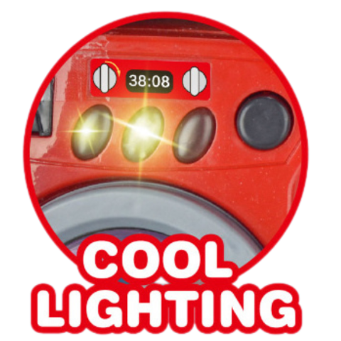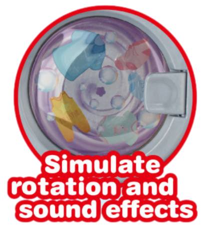 Efectele sonore și luminoase simulează procesul de spălare, oferind o experiență captivantă și interactivă.