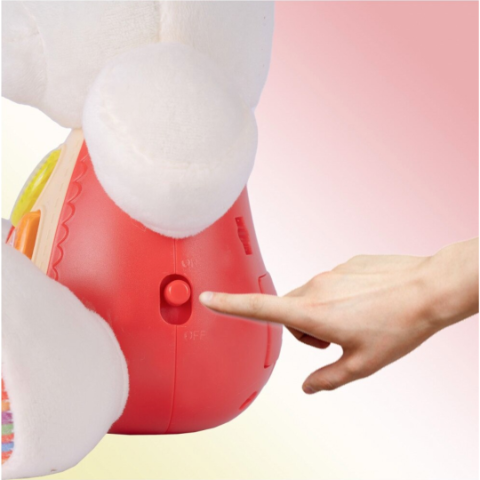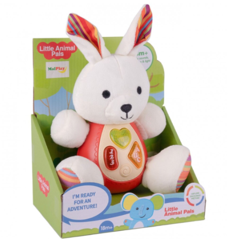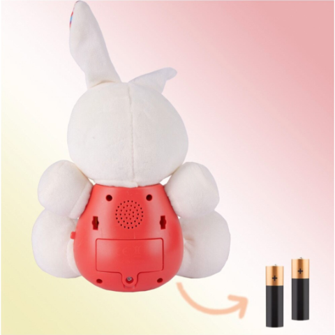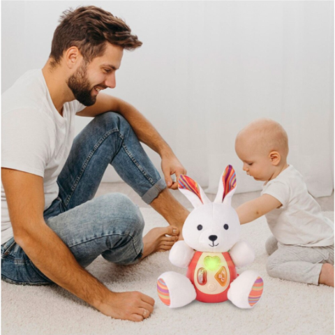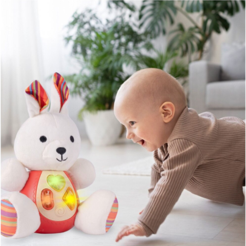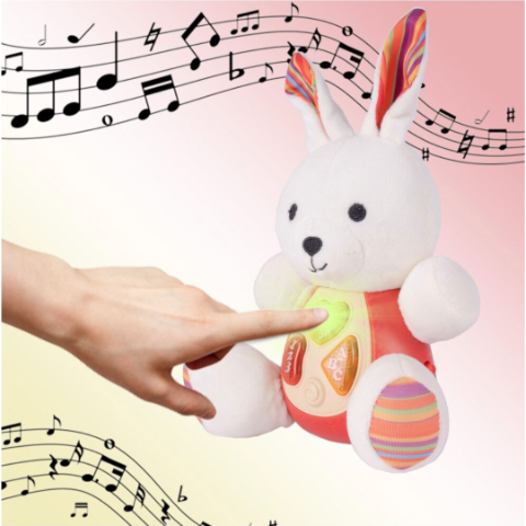Acest adorabil iepuraș de pluș combină designul prietenos cu funcționalitatea interactivă pentru cei mici.