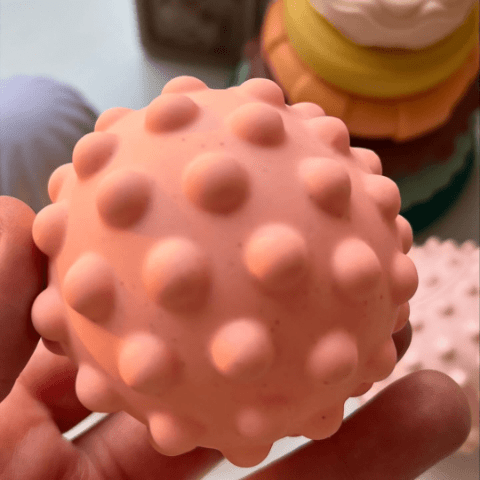 Jucăriile sunt fabricate din material alimentar non-toxic, fără BPA, fiind sigure pentru a fi mestecate și manipulate de cei mici.