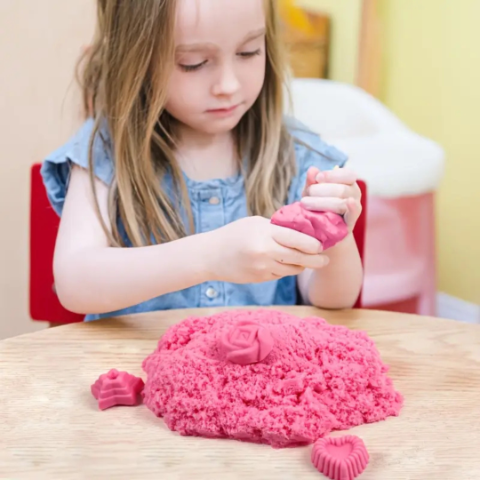 Descoperă magia nisipului kinetic, o jucărie senzorială care îi captivează pe cei mici cu textura sa unică și culorile vibrante.