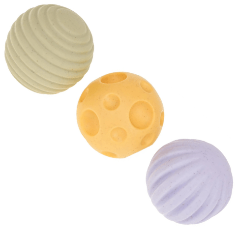 Bilele senzoriale cu texturi diferite încurajează explorarea tactilă și dezvoltarea simțului de atingere.