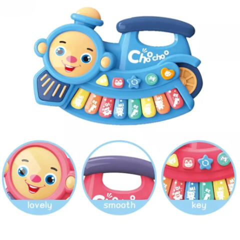 Trenulețul muzical „Chocho” este conceput pentru a captiva atenția celor mici prin sunetele sale vesele și designul colorat.