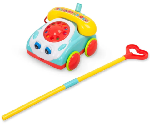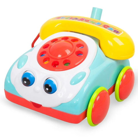 Telefonul de jucărie cu design colorat și prietenos captează imediat atenția celor mici.