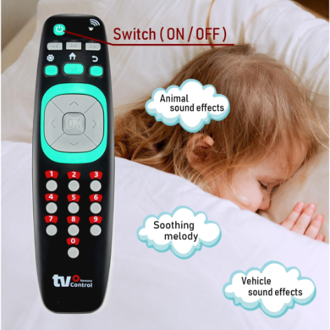 Telecomanda include sunete de efecte speciale, cum ar fi sunete de animale și vehicule, precum și melodii liniștitoare, pentru a stimula simțurile copilului.
