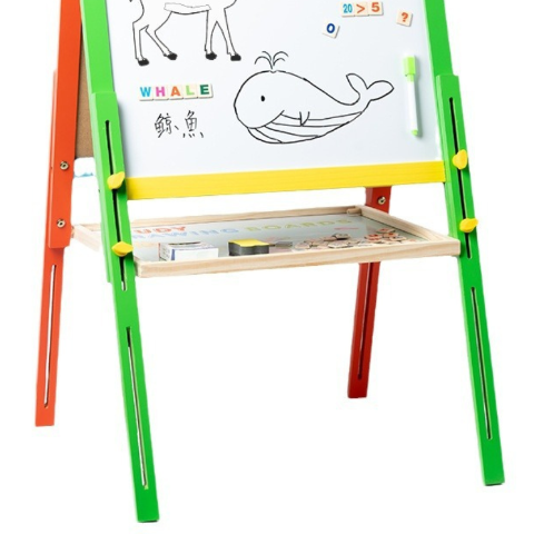 Pe o parte, tabla albă magnetică este ideală pentru desen cu marker și învățarea literelor și cifrelor magnetice.