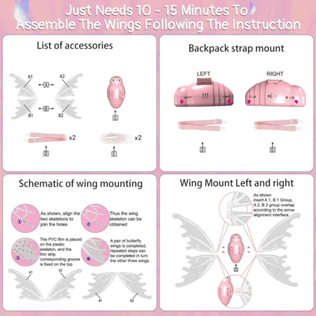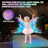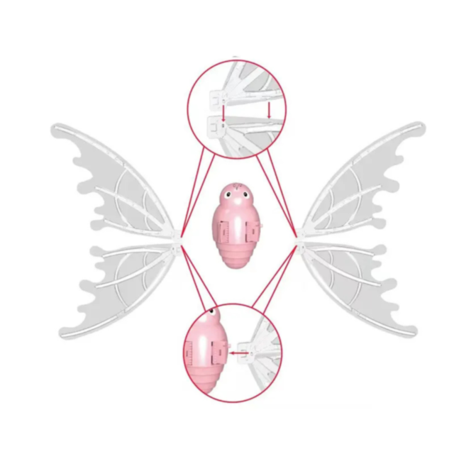 Cu un design automat, aripile flutură grațios în timp ce luminează în culori vii.