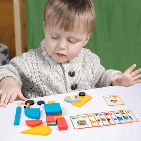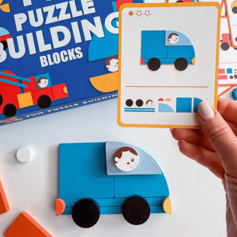 Setul include o varietate de modele cu niveluri de dificultate crescătoare, stimulând evoluția cognitivă.