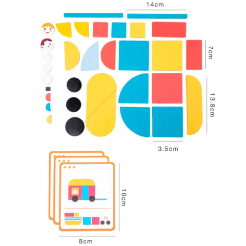 Cutia atrăgătoare cu ilustrații vesele ascunde un tangram care transformă joaca în învățare activă.