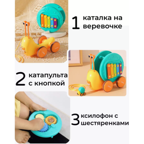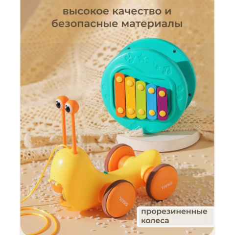 Designul prietenos al melcului transformă xilofonul integrat într-o mică orchestră pentru micuții muzicieni.