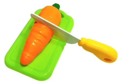Copiii pot tăia roșii, morcovi, ardei sau porumb folosind un cuțit de plastic sigur, fără risc de accidentare.