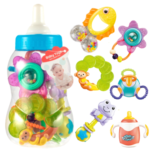 Acest set adorabil vine ambalat într-un biberon uriaș, transformând deschiderea și depozitarea într-o experiență captivantă pentru bebeluși și părinți.