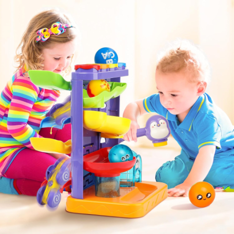Descoperă jucăria captivantă Roller Coaster Pinguin, care oferă distracție nesfârșită prin bile colorate și mașinuțe ce coboară pe piste duble.
