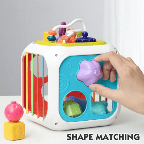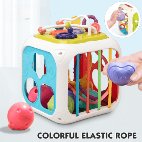 Cubul educativ 7 în 1 este un centru de joacă complet pentru cei mici, cu multiple activități Montessori care stimulează dezvoltarea cognitivă și motorie.