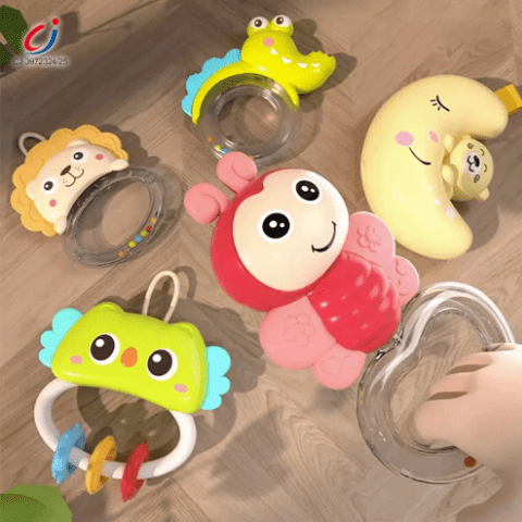 Jucăriile detașabile, precum luna cu lumini sau animăluțele colorate, aduc un plus de distracție și îi stimulează dexteritatea.