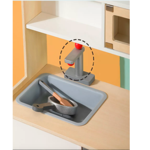Chiuveta detașabilă cu robinet aduce o notă realistă, încurajând obiceiurile sănătoase de curățenie.