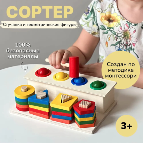 Un sortator educativ din lemn, perfect pentru dezvoltarea abilităților motorii fine și a coordonării mână-ochi.