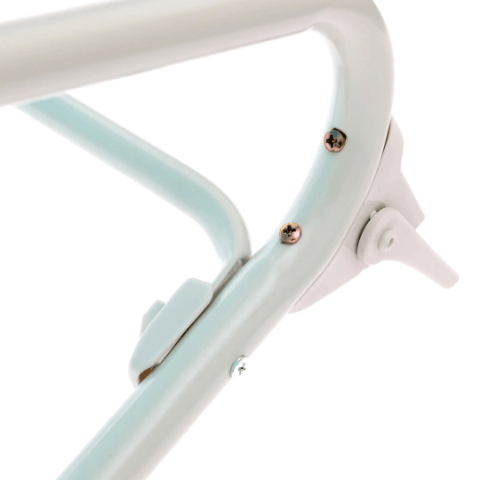 Baza metalică ușor curbată permite o balansare lină, iar sistemul poate fi fixat pentru o poziție stabilă.