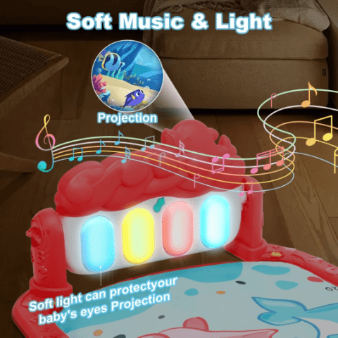 Pianul emite lumini blânde și melodii relaxante, iar proiectorul integrează imagini marine captivante pentru somn liniștit.